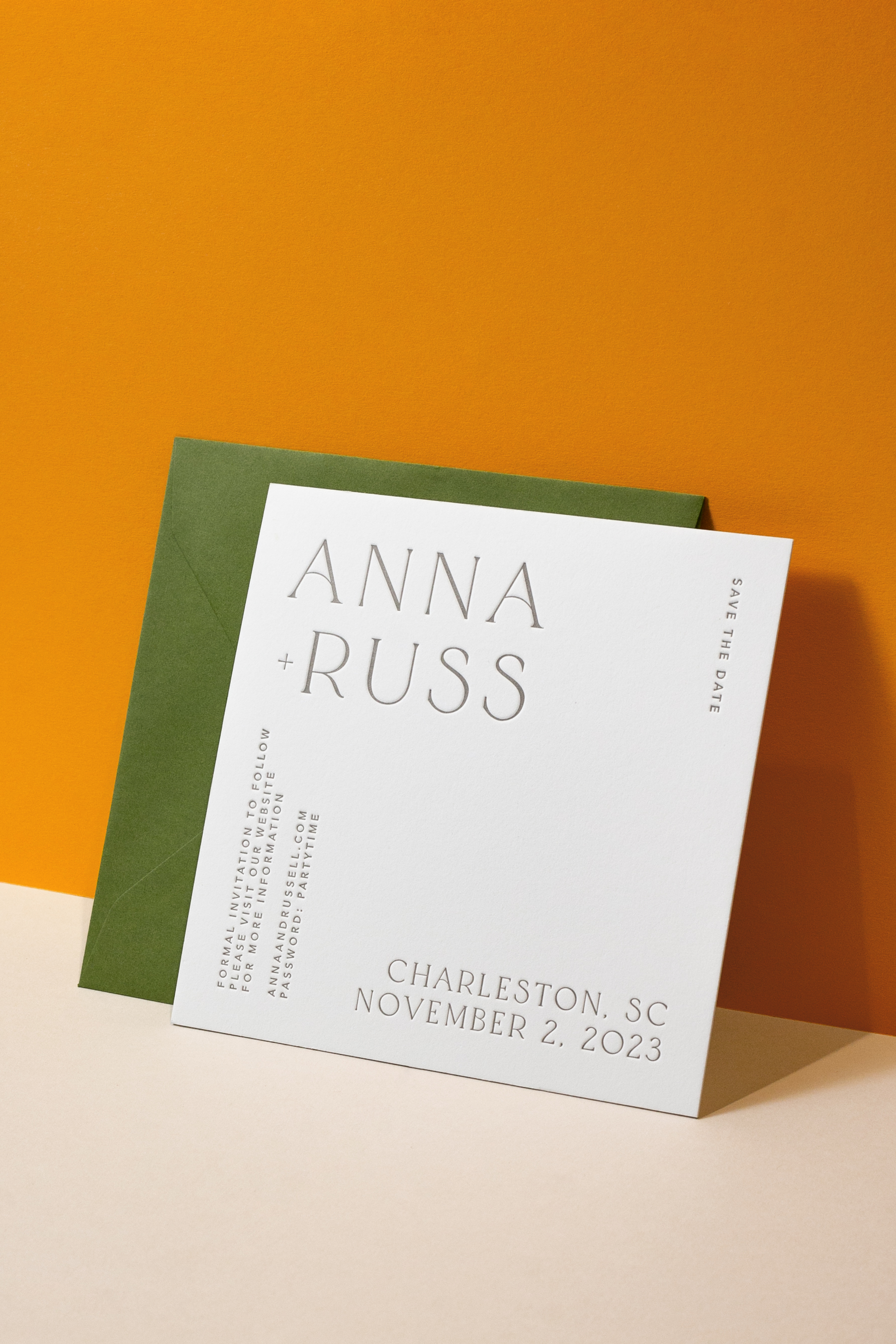 Congratulations on your special day! Whether it's your own wedding or someone you love, we’re happy to make your printed items perfect. As Charleston's Premier Wedding Printer we can help with every special item for your wedding printing. We have beautifully letterpressed and gold foiled wedding invitation and social stationery samples for you to see and feel the quality of our work. Photographs are nice but nothing compares to the tactile sensation of touching deeply letterpressed designs on luxurious 100% cotton paper. The wedding invitation samples have been designed by our talented designers here in The Design Studio as well as Charleston's talented local designers. We also collaborate with some of the finest wedding invitation designers and event planners in the country that trust our dedication and passion to the craft of letterpress printing.